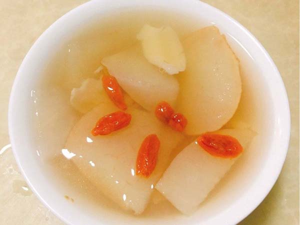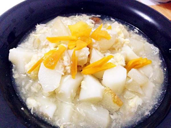 做法:雪梨和山药去皮洗净切块,入锅中加适量清水烧开,山药绵软后即可出锅,放温后调入少许蜂蜜即可食用。