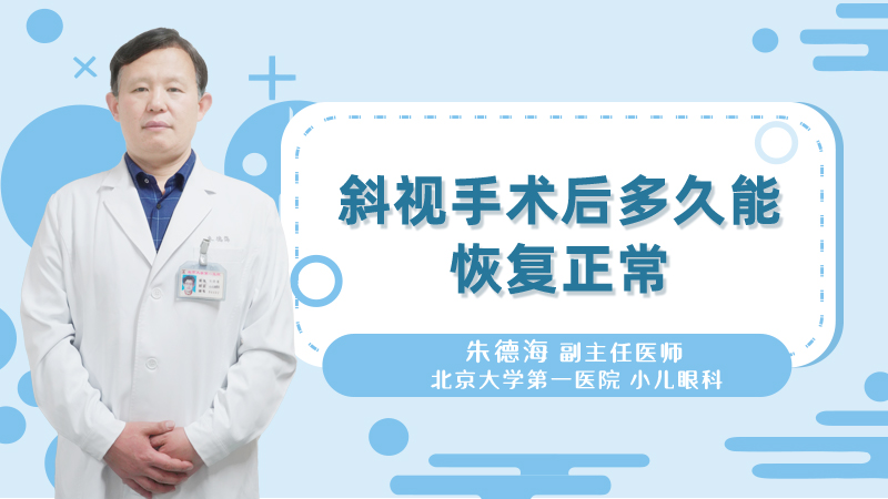 临床上斜视手术后,结膜的切口在一周左右就能恢复,也就是说外层的切口一周左右就可以愈合。眼部里的肌肉在做斜视手术时,会把肌肉的止点进行一些移动,比如说把止点往后移或者把这条肌肉缩短,所以通常是需要两周左右的时间。